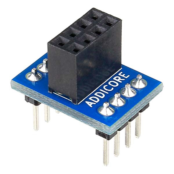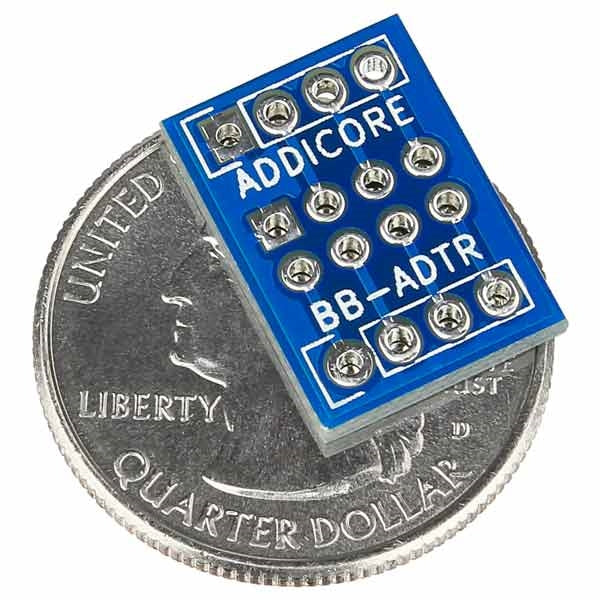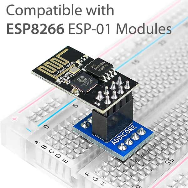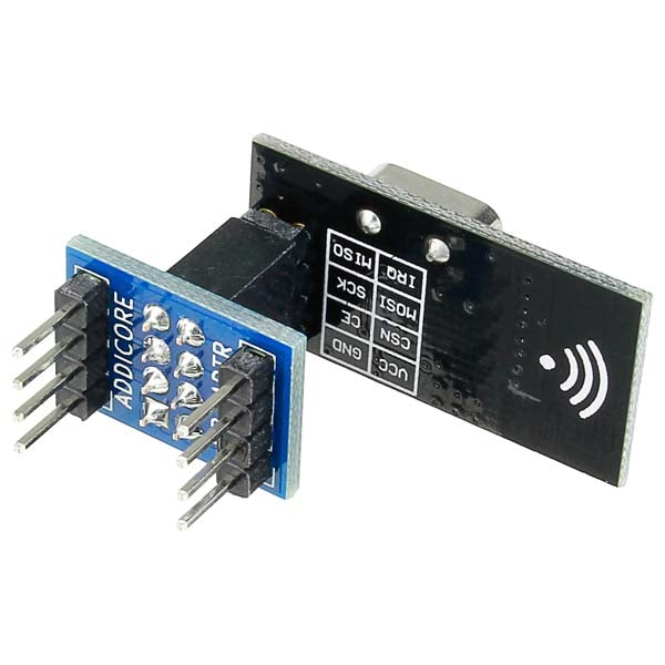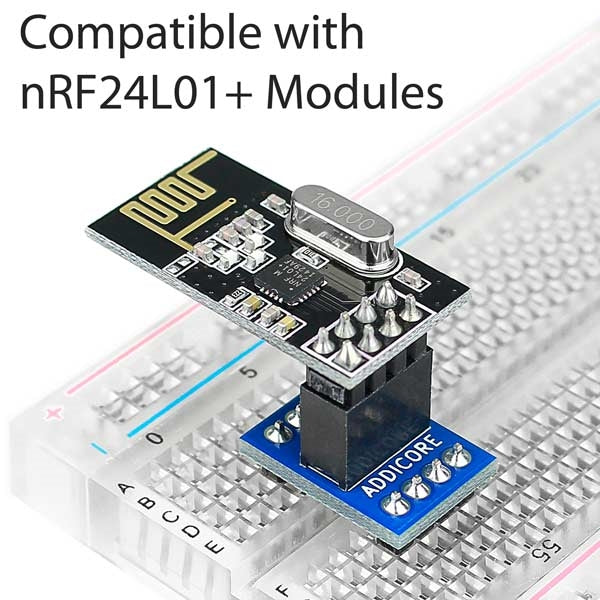 The BB-ADTR breadboard adapter makes it easy to connect any 2x4 pin device or module, such as an nRF24L01+ or ESP8266 ESP-01 module, to a standard breadboard.