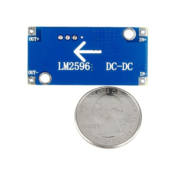 This module features the adjustable LM2596 step-down (buck) switching regulator, capable of driving a 3A load with excellent line and load regulation.