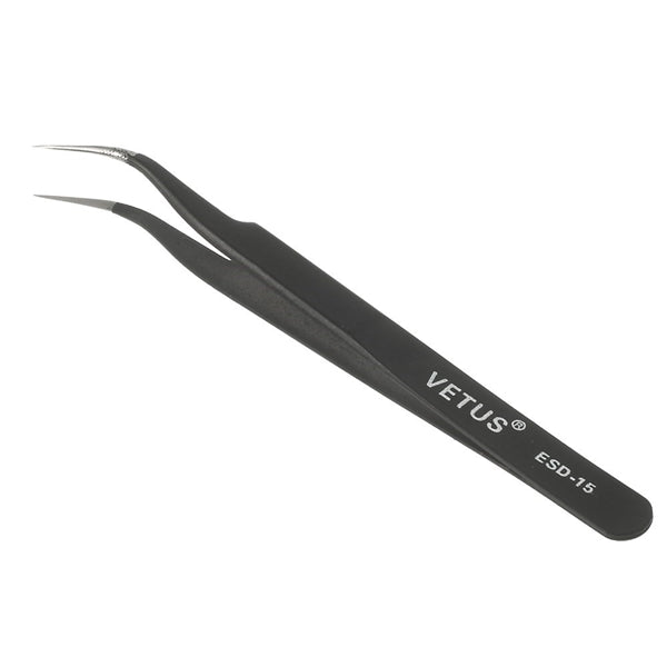 VETUS ESD-15 Anti-Static Stainless Steel Fine Tip Curved Tweezer